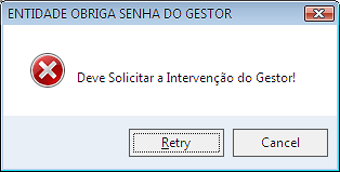 ![]() ![]() Deve solicitar a intervenção do Gestor.