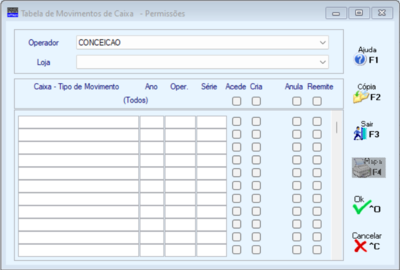 Se escolher trabalhar com Ano e/ou Operador e/ou Série deverá digitar e abrir numeração para todas as Lojas/Caixas/Ano/Operador/Série com que venham a trabalhar.