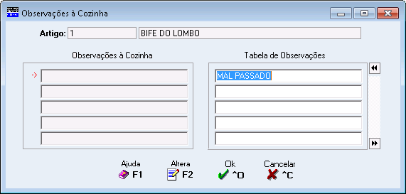 ![]() ![]() Só os dados na coluna da esquerda, Observações à Cozinha, serão impressos no Talão de Cozinha.