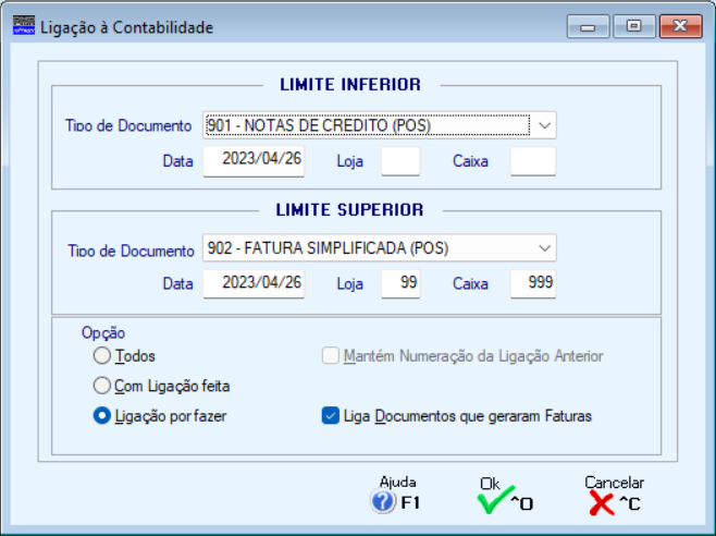 Assinalado com , assume ligação à Contabilidade dos Documentos: