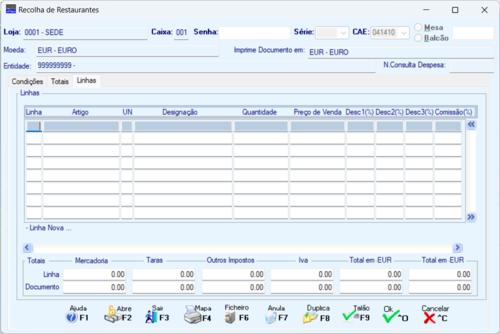 1- RECOLHA Os ecrãs seguintes são abertos em dois separadores: Condições; Totais; Linhas. Condições Totais Linhas