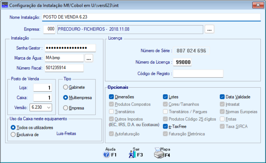 Número Fiscal: Número de Identificação Fiscal da Entidade licenciada na Instalação conforme o Nome dado no campo "Nome da Instalação".