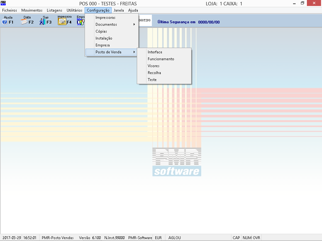 Indicação do Interface, Mensagem de Visor (Início e Espera), Fatura Simplificada/Apuro e Vendas com a indicação do Código da Empresa, para as Entidades e Artigos, Tipo de Documento a Débito e a Crédito.