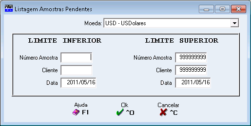 6- PENDENTES Referente a Movimentos. LIMITE INFERIOR/SUPERIOR Indique os Limites a listar: Número da Amostra; Cliente; Data.