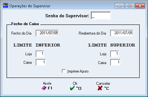 7- FECHO DE CAIXA![]() SENHA DO SUPERVISOR