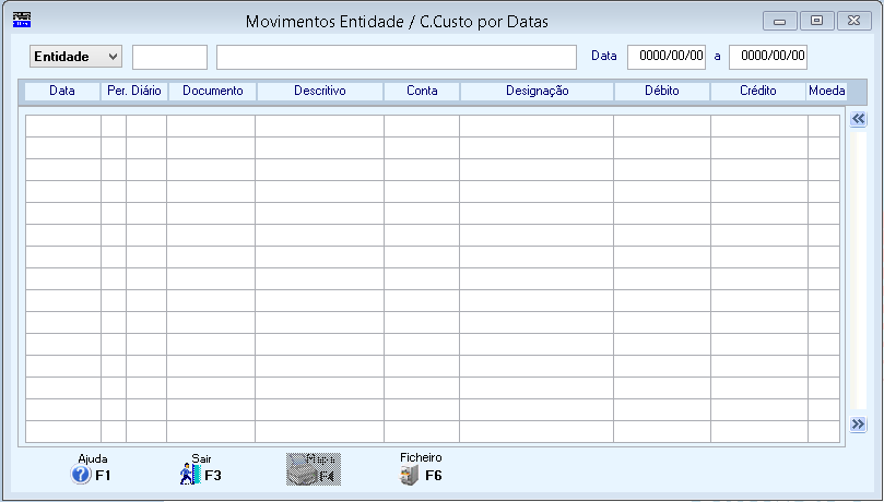 1.5- LISTAGEM DE ENTIDADES/CENTRO DE CUSTO POR DATASMovimentação por Entidades ou Centros de Custo e parametrizada por Datas.