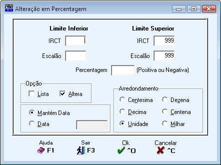 Efetuada a alteração em percentagem do Vencimento Base mantendo a Data Atual.