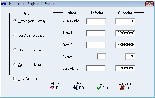 1.4.1- REGISTO DE EVENTOS-LISTAGEMSe quiser pode listar os Empregados Demitidos.