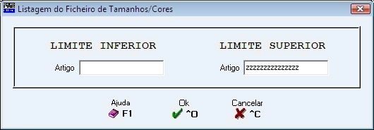 ![]() Se os campos "Todos", para os Códigos de Tamanhos, e "Todas", para os Códigos de Cores estiverem com