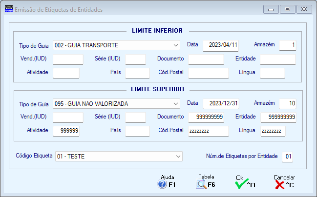 6.1- GUIAS - EMISSÃO ETIQUETAS-ENTIDADES![]() LIMITE INFERIOR/SUPERIOR