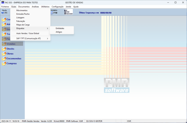 Pelo Número de Mapa é detetado qual a configuração a usar na emissão de Etiquetas.